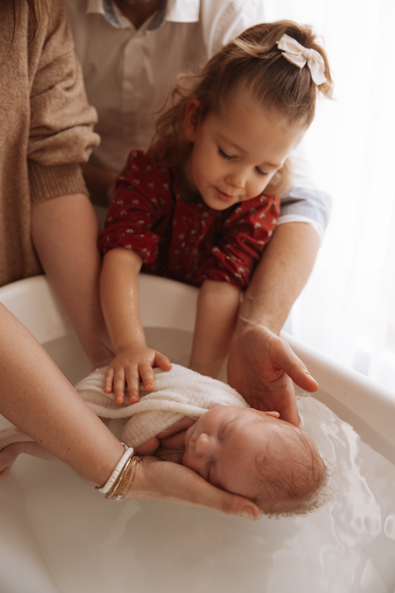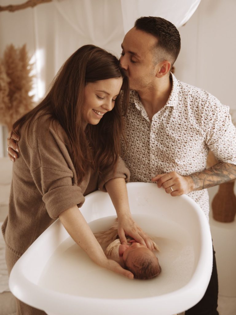 Nous réalisons le bain avec toute la délicatesse et l’attention qu’il demande. Une fois bébé installé dans sa bulle de bien-être, je vous laisse pleinement vivre cet instant en famille pendant que je capture ces souvenirs avec discrétion.