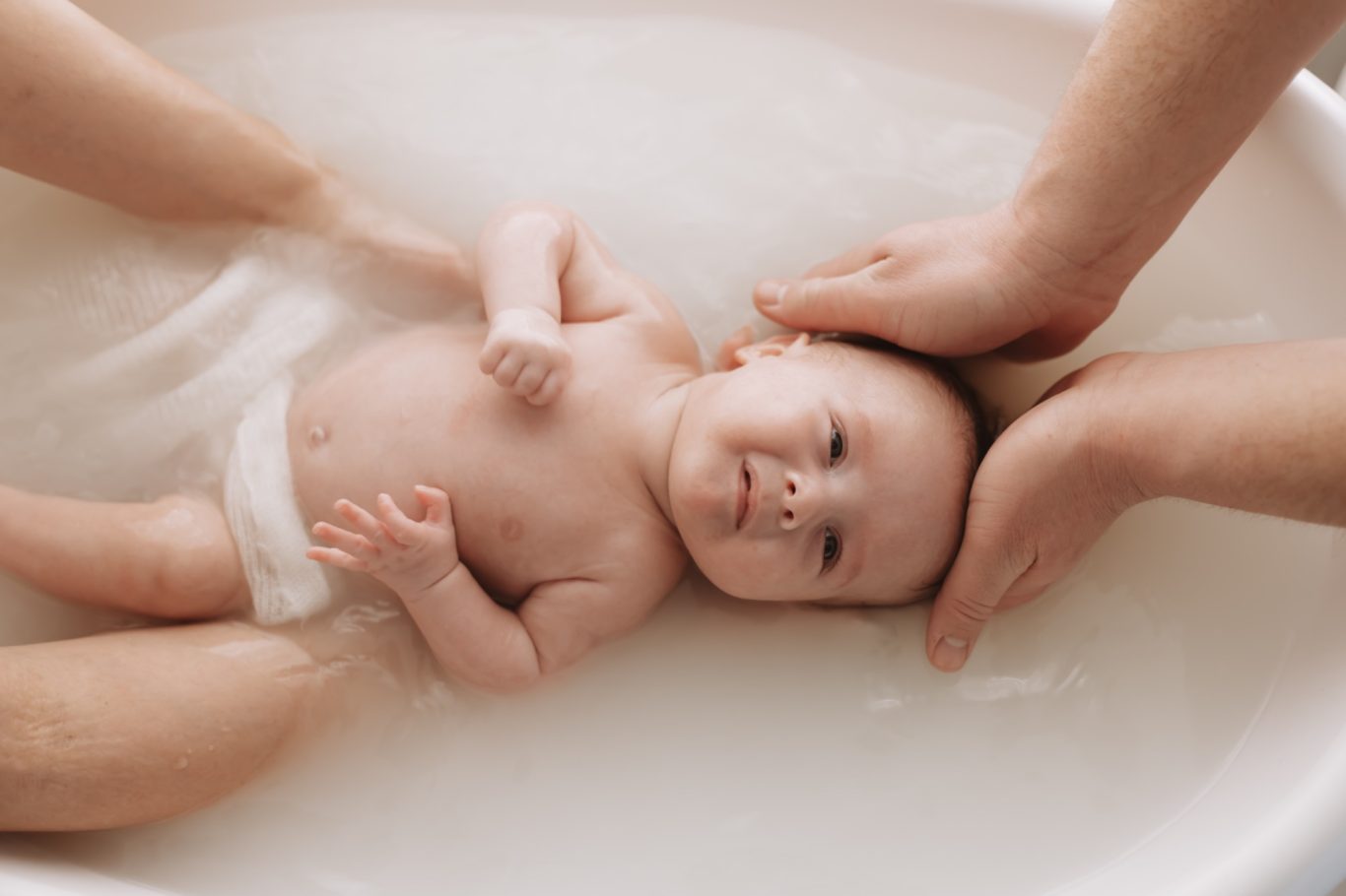 Dans l’idéal, ce bain peut être le tout premier de votre bébé.